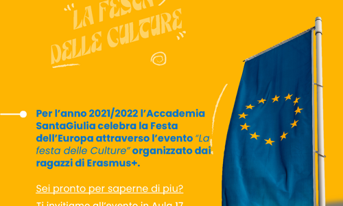 Per l'a.a. 2021/2022 l'Accademia di Belle Arti di Brescia SantaGiulia celebra la Festa dell'Europa attraverso l'evento "La Festa delle Culture" organizzato dalla studentessa Giulia Catenaro, Erasmus Buddy Student per questo anno accademico, e dai ragazzi incoming e outcoming di Erasmus+.