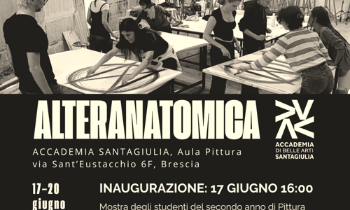 Dal 17 al 20 giugno 2025, il laboratorio di Pittura dell’Accademia SantaGiulia (via Sant’Eustacchio 6F, Brescia) ospiterà ALTERANATOMICA, mostra conclusiva del corso di Anatomia Artistica del II anno del triennio di Pittura condotto dal Professor Giuliano Guatta.