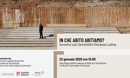 Mercoledì 22 gennaio alle ore 10:00, presso l'Aula Magna dell'Accademia SantaGiulia, sarà ospite l'architetto Vincenzo Latina. Professore Associato di Progettazione Architettonica e Urbana presso l'Università degli Studi di Catania, autore di numerose pubblicazioni, architetto di fama internazionale e autore del progetto di riqualificazione ambientale del Memoriale delle vittime del naufragio del 3 ottobre 2013 a Lampedusa.
