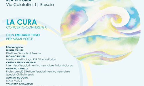 Mercoledì 1 novembre, alle ore 17.00 presso Korian-Residenza Vittoria si terrà "LA CURA", il concerto-Conferenza con Emiliano Toso, biologo molecolare e musicista compositore. L'evento, organizzato con il supporto dell'Associazione MAMi VOICE e del Giornale di Brescia, rientra nel palinsesto degli appuntamenti di Brescia che Cura e nella rassegna Bergamo Brescia Capitale della Cultura 2023.