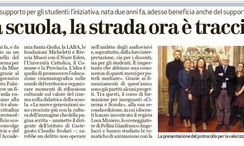 Riportiamo l'articolo del Bresciaoggi di Venerdì 8 novembre 2019 in merito alla nostra partecipazione alla presentazione del protocollo per la valorizzazione del cinema.