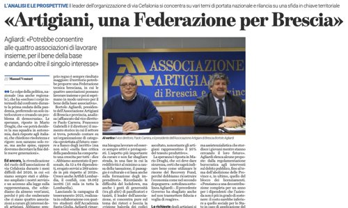 Alleghiamo l'articolo del Bresciaoggi di sabato 13 febbraio 2021 dedicato all'Associazione Artigiani di Brescia e Provincia. Nell'articolo viene citata anche la nostra Accademia per la realizzazione della campagna promozionale di tesseramento 2021 all'Associazione.