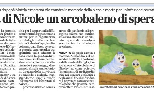 Riportiamo l'articolo pubblicato dal Bresciaoggi il 28 gennaio 2021, che da spazio alla presentazione del Cortometraggio animato "L'Arcobaleno di Nicole" presentato ieri dall'Accademia SantaGiulia durante la tavola rotonda alla quale hanno partecipato l'Associazione Avisco, gli Spedali civili di brescia e la stessa Associazione Arcobaleno di Nicole.