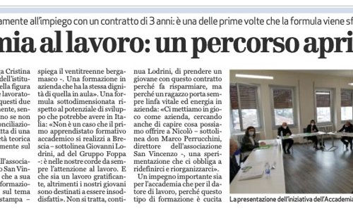 Riportiamo l'articolo del Bresciaoggi del 6 febbraio 2021 che da nota dell'avvio del primo apprendistato accademico di III livello in Italia.