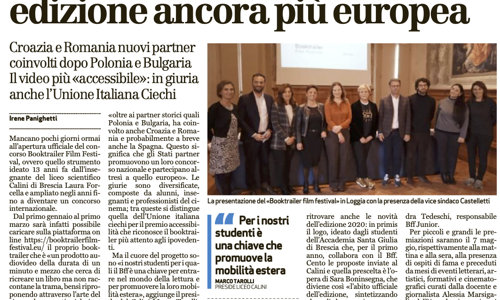 Alleghiamo l'articolo del Bresciaoggi del 19 dicembre 2019, pubblicato a seguito della conferenza stampa di presentazione del Booktrailer Film Festival 2020 che vede coinvolta anche Accademia SantaGiulia.