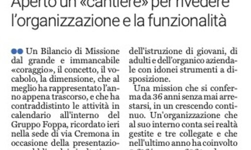 Riportiamo in allegato l'articolo del Bresciaoggi del 7 aprile 2022 che da spazio alla presentazione del Bilancio di Missione 2020/2021 del Gruppo Foppa avvenuta nella serata del 6 aprile.