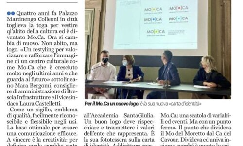Il Bresciaoggi del 30 settembre 2021 da nota del progetto di identità visiva vincitore del Concorso di idee indetto da Brescia Infrastrutture per la realizzazione del nuovo logo del MoCa: è Marco Gabanelli, studente del III anno di Grafica dell’Accademia SantaGiulia, il realizzatore del nuovo marchio.