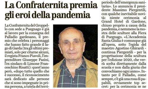 Alleghiamo l'articolo pubblicato sul Bresciaoggi in data 11 agosto 2020 che da nota dell'annuale premiazione di eccellenze illustri del territorio gardesano ad opera della Confraternita del Groppello di Puegnago del Garda.