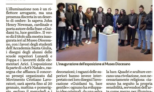 Alleghiamo l'articolo pubblicato sul Bresciaoggi del 21 dicembre 2019 che da nota della mostra delle opere di studenti di Pittura, Scultura e Arti visive esposte al Museo Diocesano di Brescia fino al 10 gennaio 2020.