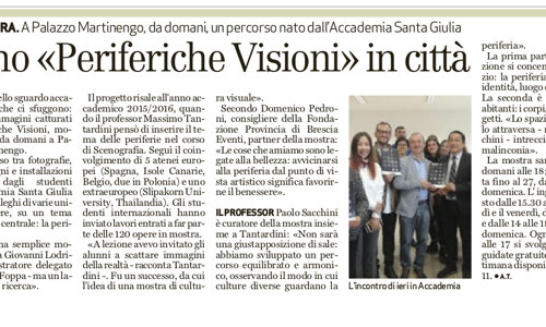 Riportiamo l'articolo estratto dal Bresciaoggi del 3 ottobre 2019 che da spazio alla mostra Periferiche Visioni che inaugura a Palazzo Martinengo Cesaresco di Brescia, all'interno della rassegna gestita da Fondazione Provincia di Brescia eventi "6 al Martinengo", il 4 ottobre p.v..