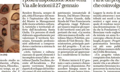 Alleghiamo l'articolo del Bresciaoggi dedicato al Master di primo livello lanciato in Accademia SantaGiulia il 31 ottobre 2019.