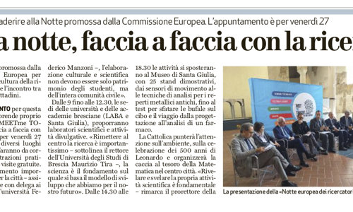 Riportiamo l'articolo del 21 settembre 2019 del Bresciaoggi che da nota dell'evento Notte di ricercatori che si terrà il 27 settembre 2019.
