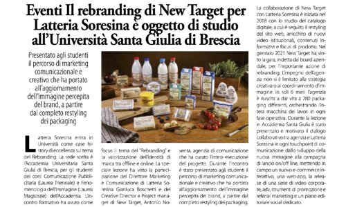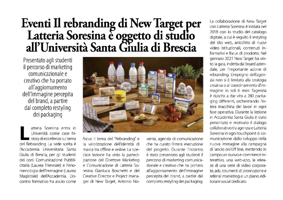 Riportiamo l'articolo pubblicato sul Daily Media, il quotidiano della comunicazione, il 10 giugno 2022 che da nota della lezione di Rebrending sul caso studio Latteria Soresina, tenuta in Accademia SantaGiulia a metà maggio.