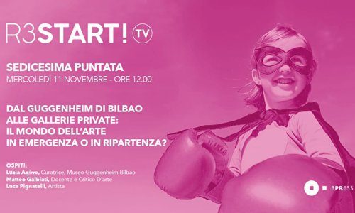 "Dal Guggenheim di Bilbao alla Gallerie private: il mondo dell'arte in emergenza o in ripartenza?" è l'argomento della sedicesima puntata, che si terrà mercoledì 11 novembre 2020, e che vede relatori ospiti Lucia Agirre, Curatrice del Museo Guggenheim di Bilbao, Matteo Galbiati, Docente (Accademia SantaGiulia) e Critico d'Arte, Luca Pignatelli, Artista.