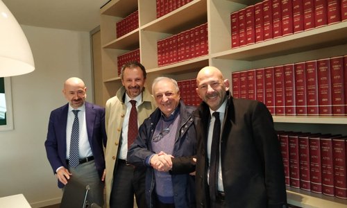 In fotografia: da six il notaio Enrico Lera, Paolo Botturi (figlio di Claudio Botturi), Claudio Botturi e il Ragioniere Giovanni Lodrini, Amministratore Delegato Gruppo Foppa.