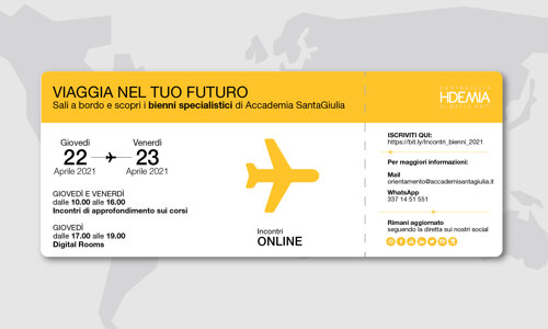 Giovedì 22 e Venerdì 23 Aprile 2021 sali a bordo e scopri i bienni specialistici di Accademia SantaGiulia!