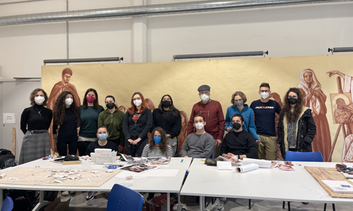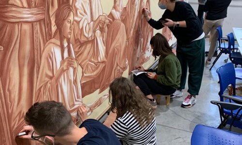 Prosegue l'esecuzione dei pannelli celebrativi della vita di San Luca Evangelista che stanno realizzando gli studenti dell'Accademia SantaGiulia e dell'Istituto d'Arte di Sao Lucas Casthanhal in Brasile.