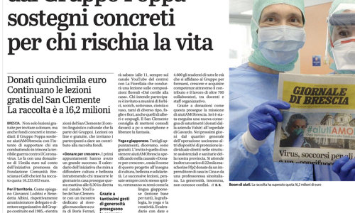 In allegato l'articolo del Giornale di Brescia pubblicato in data 16 aprile 2020 in merito all'iniziativa Donare per Crescere promossa dal Gruppo Foppa.