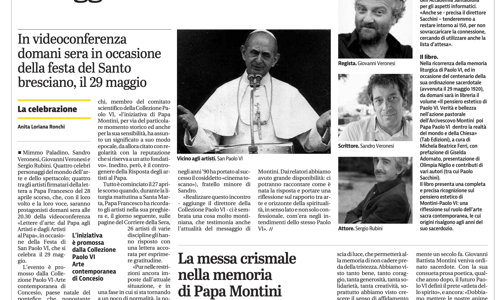 Riportiamo la notizia del Giornale di Brescia del 28 maggio 2020 nella quale si da nota dell'evento online organizzato da Collezione Paolo VI di Brescia, resa possibile dal supporto tecnico-informatico dell'Accademia SantaGiulia.
