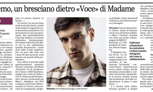 Riportiamo l'articolo pubblicato il 18 febbraio 2021 sul Giornale di Brescia che da spazio alla partecipazione - come produttore musicale - al Festival di Sanremo 2021 di Enrico Botta, neodiplomato in Grafica e Comunicazione presso la nostra Accademia di belle arti.