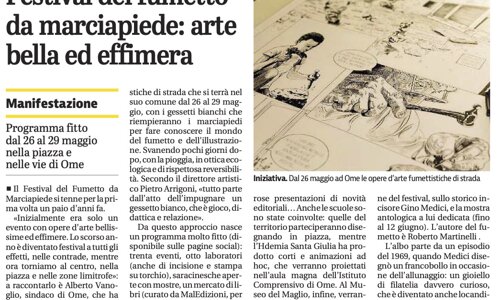 Riportiamo l'articolo del 20 maggio 2022 del Giornale di Brescia che da spazio alla nuova edizione del Festival del Fumetto da marciapiede che si terrà a Ome dal 26 al 29 maggio.