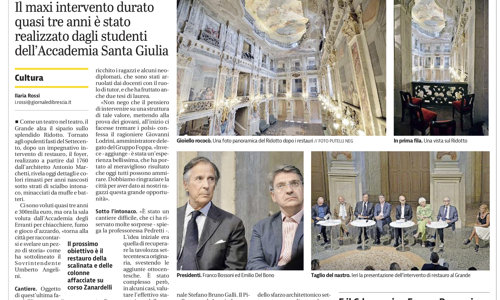 Riprotiamo l'articolo realizzato dalla Giornalista Ilaria Rossi, a seguito della conferenza stampa del 4 settembre 2019 che ha sancito la restituzione del Ridotto del teatro grande al suo antico splendore, a seguito degli interventi di reastauro conservativo realizzati dall'Hdemia SantaGiulia e resi possibili dall'accordo quadro fra Fondazione Teatro Grande e Gruppo Foppa e dal bando regionale Cult City.