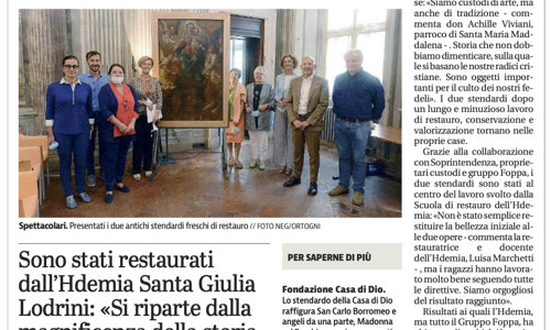 Il Giornale di Brescia del 16 luglio 2020 da spazio alla consegna degli stendardi restaurati dall'Accademia SantaGiulia e restituiti ai legittimi proprietari: il settecentesco stendardo processionale del maestro Mauro Picenardi della parrocchia di Santa Maria Maddalena di Cremosano (CR); e il seicentesco stendardo raffigurante San Carlo Borromeo e angeli, della Fondazione Casa di Dio Onlus di Brescia.