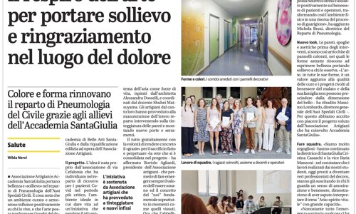 Riportiamo l'articolo del Giornale di Brescia del 23 luglio 2022 che da spazio alla riqualificazione del reparto di Pneumologia dell'Ospedale Civile di Brescia e all'intervento decorativo effettuato dagli studenti di Decorazione Artistica dell'Accademia SantaGiulia.
