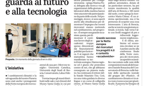 Riportiamo l'articolo del Giornale di Brescia dei 28 Settembre 2019 in merito alla partecipazione alla Notte Europea dei Ricercatori presso la nostra sede e il Museo Santa Giulia.