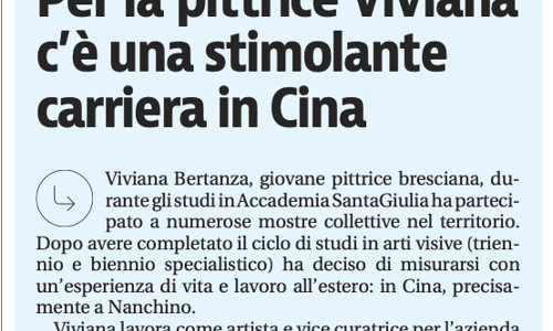 Riportiamo l'estratto del 15 giugno 2020, dal Giornale di Brescia sezione lavoro, che riporta l'intervista a Viviana Bertanza, ex studentessa di Arti Visive Contemporanee dell'Accademia SantaGiulia che attualmente lavora in Cina come Artista, specializzata nell'utilizzo della foglia oro e sue tecniche di applicazione.