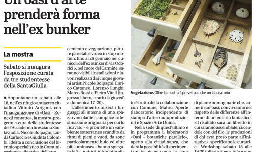 Riportiamo l'articolo del Giornale di Brescia del 9 gennaio 2020 che da nota dell'inaugurazione della mostra collettiva OASI, zone di contatto che si terrà sabato 11 gennaio 2020.