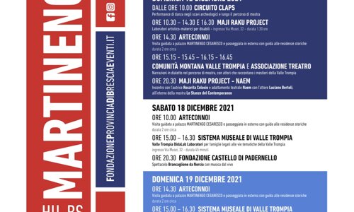 Alle 14.30, ArteconNoi propone una visita guidata (durata 2 ore circa) dedicata a Palazzo Martinengo Cesaresco, al contesto architettonico, all’apparato decorativo dell’interno e al legame con la città di Brescia. La visita si conclude con una passeggiata nel centro storico di Brescia alla scoperta dei meravigliosi palazzi che furono un tempo di proprietà della famiglia Martinengo.