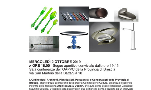 Si terrà mercoledì 2 ottobre 2019, presso la sede dell'Ordine degli Architetti di Brescia in via San Martino della Battaglia 18, l'incontro con il designer Giuseppe Maurizio Scutellà.