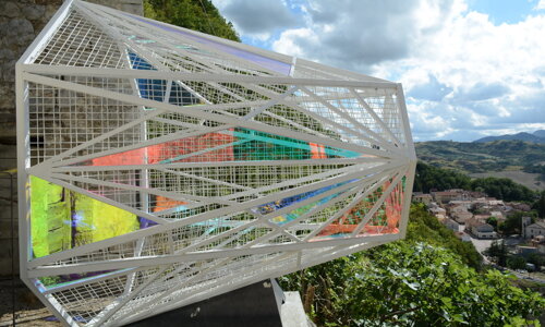 In fotografia: Kaleidoscope 2020, Ferro verniciato, plexiglass e pellicola dicroica, 290x290x300 cm