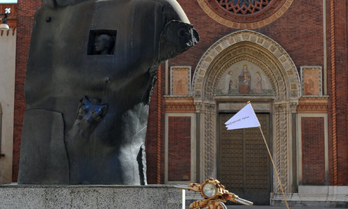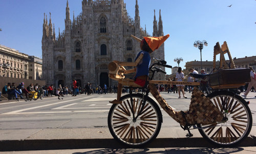 L’artista sta nel suo laboratorio/negozio di Milano come il custode di un bosco d’arte. (da Italian Ways)