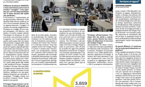 Riportiamo in allegato l'intervista a Giovanni Lodrini, Amministratore Delegato del Gruppo Foppa, realizzata da Romano Guatta Caldini, e pubblicata su La Voce del Popolo del 7 aprile 2022 in occasione della presentazione del Bilancio di Missione 2020/2021 del Gruppo Foppa avvenuta nella serata del 6 aprile presso la sede di via Cremona 99 a Brescia.