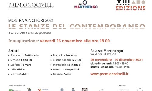A partire dal 26 novembre, si terrà a palazzo Martinengo Cesaresco, la mostra LE STANZE DEL CONTEMPORANEO, esposizione delle opere degli artisti vincitori dell'edizione 2021 del Premio Nocivelli.