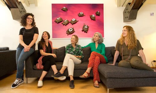In fotografia: al centro le tre socie fondatrici, a destra Manuela Ruggeri (amministrazione e progetti), a sinistra Irene Seneca (formazione storica arte) _ la foto è stata scattata da Francesco Basileo (responsabile foto e web).