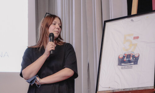 Dopo aver visionato circa 70 proposte realizzate dagli studenti di Grafica, l'azienda ha voluto premiare la grafica di Isabella Contessa, che è stata in seguito adattata e stampata sulle t-shirt che hanno arricchito gli stand del merchandising dell'edizione 2022 della corsa più bella del mondo.
