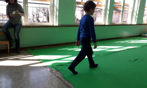 Nel primo incontro abbiamo fatto sperimentare ai bambini la tecnica del Green Screen, che consiste nell’utilizzare, come dice la parola stessa, un telo verde dal quale si può rimuovere il colore di sfondo per sostituirlo con qualsiasi altra immagine. I bambini ovviamente si sono divertiti molto, compiendo gesti diversi e divertenti sul telo verde. Hanno visto il loro corpo saltare, muoversi e cambiare.