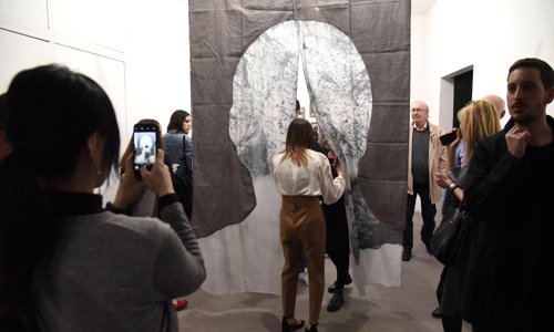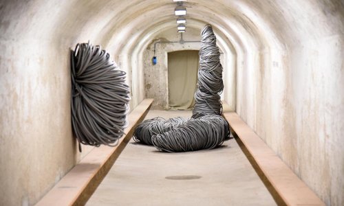 In occasione della mostra, l’artista ha invaso letteralmente i due corridoi del Bunker, presentando in uno di questi l’installazione immersiva Camminando/Contaminando, realizzata nel 2010 e formata da circa 45 metri cubi di polistirolo espanso in palline: una meravigliosa situazione di forte coinvolgimento per il pubblico, chiamato ad attivarla con la propria interazione. Il percorso espositivo era invaso inoltre da Bozzoli, fili di poliuretano espanso, intrecciati e avvolti personalmente dall’artista, adattandoli allo spazio espositivo. Le opere assumono connotazioni naturali, vegetali e animali, e dimostrano come il gesto creativo può donare ai materiali plastici una nuova vita, in costante metamorfosi.