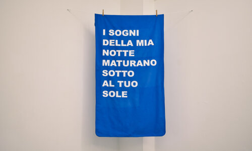 5. Arianna Greci, I sogni della mia notte maturano sotto al tuo sole, 2022 - stampa su telo mare, 180x90cm