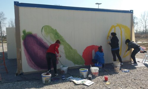 Le studentesse del III anno di Decorazione, coordinate dal prof. Mirko Bolpagni, hanno progettato e realizzato un'operazione di restyling della sede del “Villaggio degli Orti” sito in San Zeno Naviglio, alle porte di Brescia.