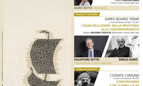 - venerdì 17 settembre, I SEGNI DELL’UOMO: DALLA PREISTORIA ALLA CONTEMPORANEITÀ – Salvatore Settis, archeologo e storico dell’arte ed Emilio Isgrò, artista