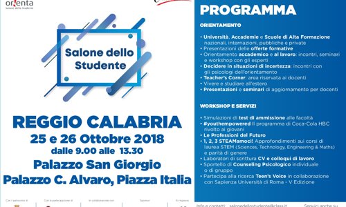 Il salone dello studente di Reggio Calabria si terrà il 25 e 26 ottobre a palazzo San Giorgio e Palazzo C. Alvaro.