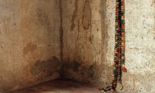 2_ Discendere, 2018, paraffina, pigmenti, zafferano, carta, misure ambientali