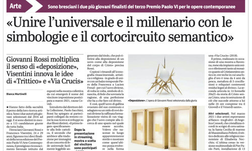 Giovanni Rossi e Francesco Visentini, rispettivamente Rossi studente del biennio di Arti Visive Contemporanee e Visentini ex studente del biennio di Scultura Pubblica Monumentale, sono i due artisti bresciani più giovani (24 e 29 anni) selezionati fra i 10 finalisti del Premio d'Arte COntemporanea Paolo VI, istituito nel 2016 dalla Collezione Paolo VI di Concesio (BS).