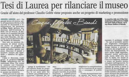 In allegato l'articolo pubblicato dal Giornale di Lecco in merito al progetto di laurea di Elisa Ferri che, guidata dal professor Claudio Gobbi, ha lavorato ad una tesi dedicata al Civico Museo Setificio di Abbadia.