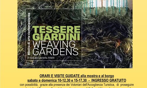 La mostra d'arte contemporanea TESSERE GIARDINI contiene l’auspicio di una rinnovata capacità costruttiva che si sostituisca al consumo dando forma a quella cultura che ricerca, oggi, l’interazione critica e creativa tra uomo e natura.