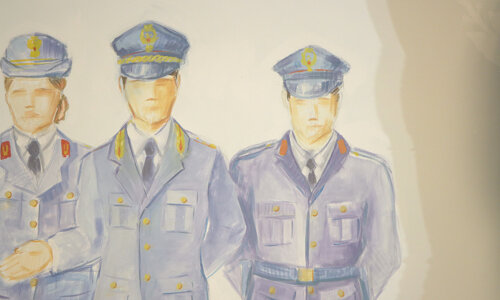 La Scuola di Polizia di Brescia, desiderava esprimere nel modo più efficace la sua missione, e ha chiesto ai giovani decoratori della SantaGiulia di rappresentare il percorso che un aspirante poliziotto deve affrontare per avere l’onore di indossare l’uniforme della Polizia di Stato e, quindi, svolgere la sua missione al servizio dei cittadini.